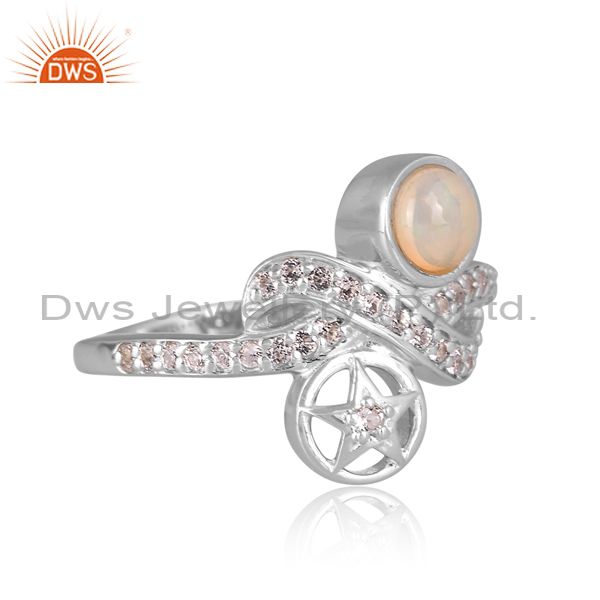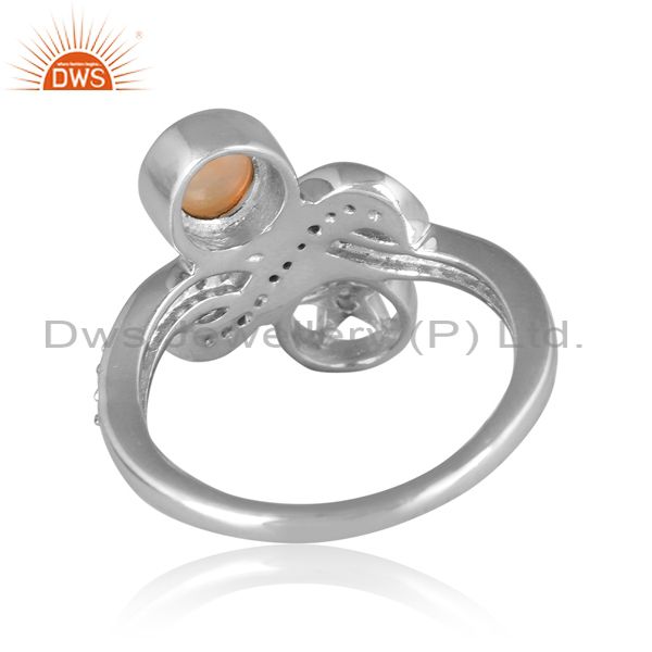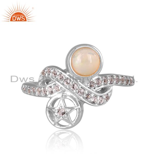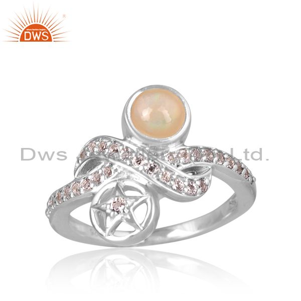 Ethiopian Opal & White Topaz Studded Silver Gold Ring