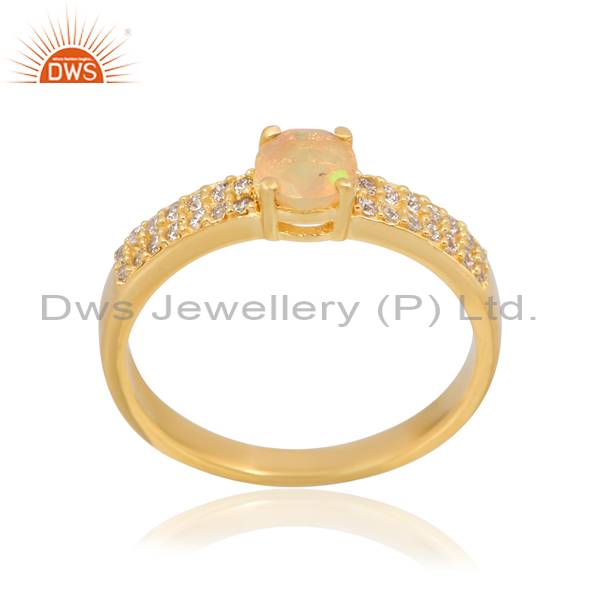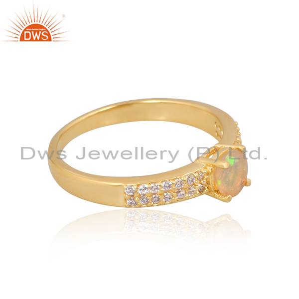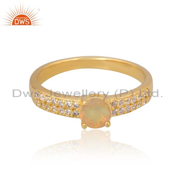 Ethiopian Opal And Cz Ring - Round Cut, Stunning Design