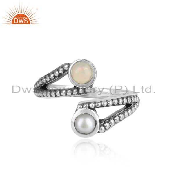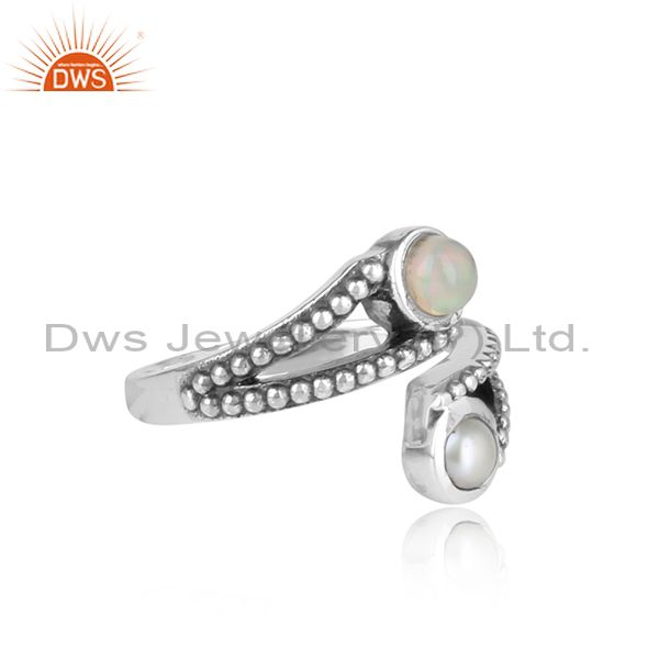 ETHIOPIAN OPAL and pearl cabushion sterling silver ring