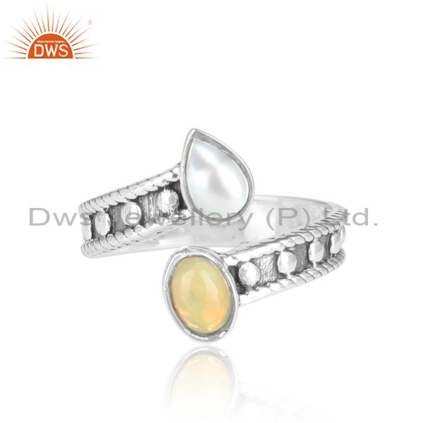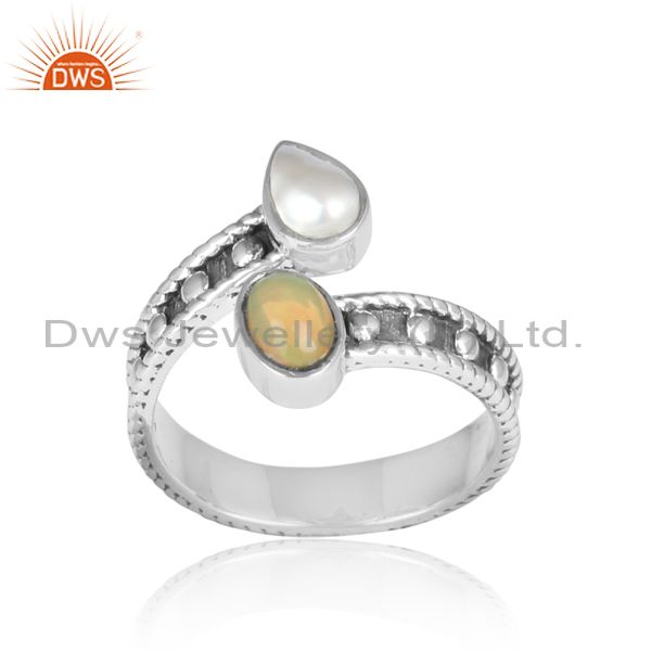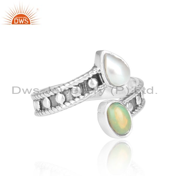Ethiopian Opal And Pearl Gemstone Sterling Silver Ring