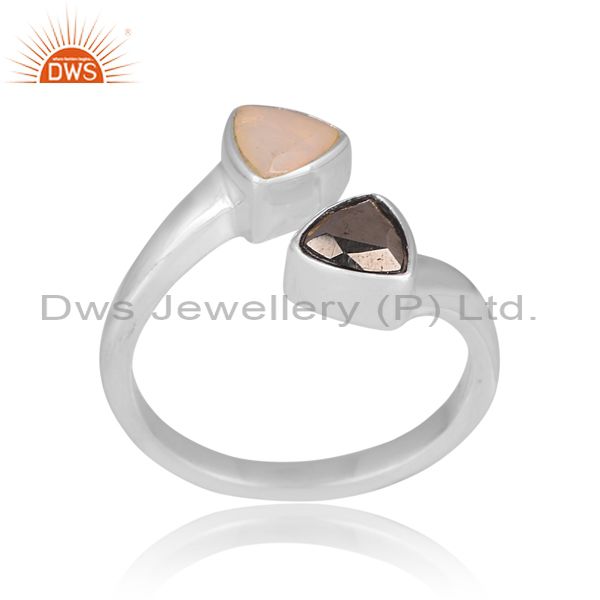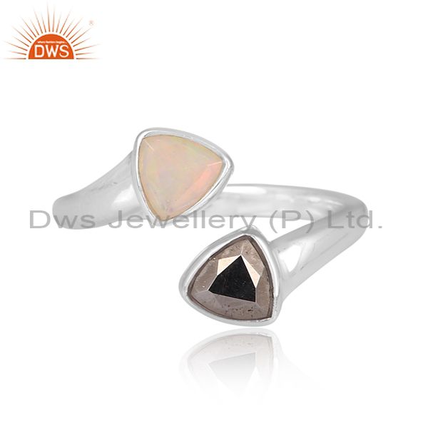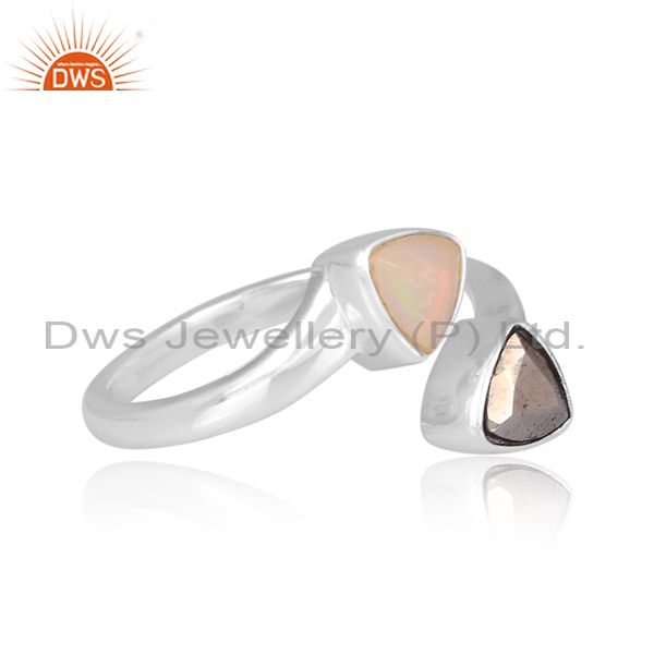 Ethiopian Opal And Pyrite Set Fine Silver Multi Stone Ring