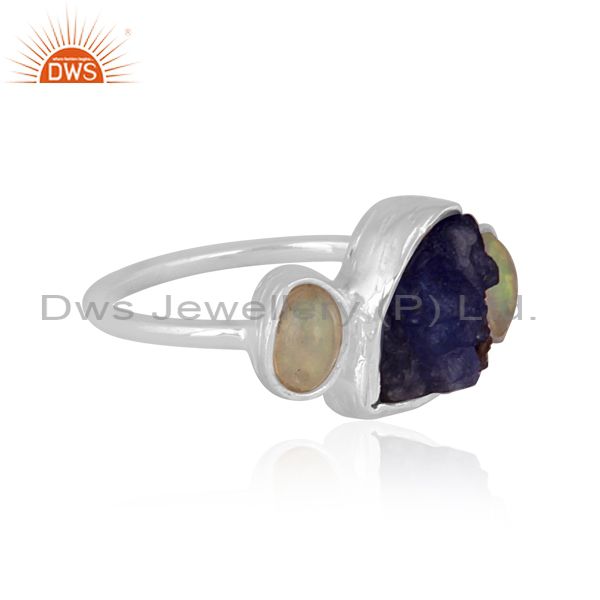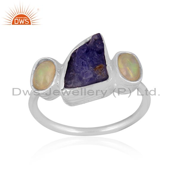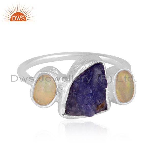 Ethiopian Opal And Tanzanite Fine Silver Multi Stone Ring