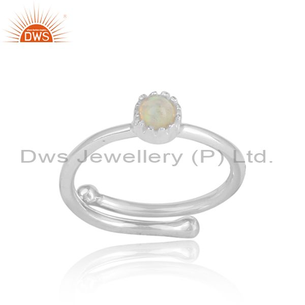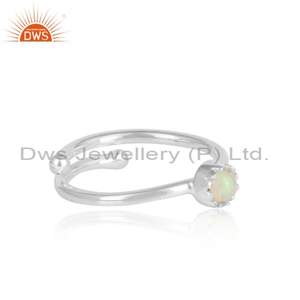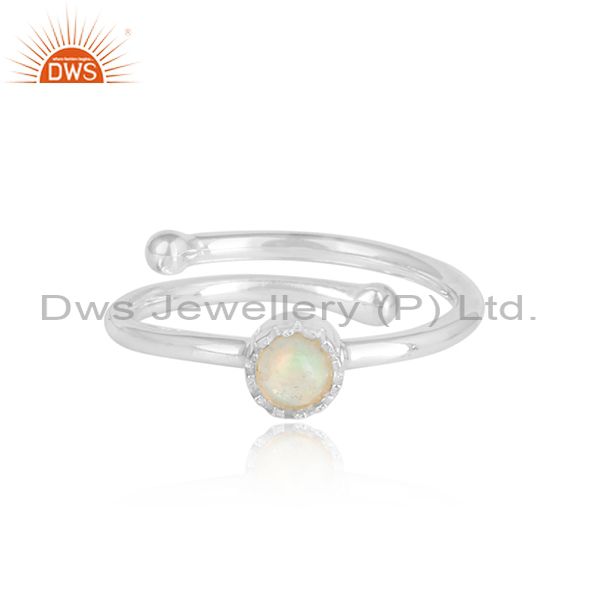 Ethiopian Opal Cabushion Sterling Silver White Ring