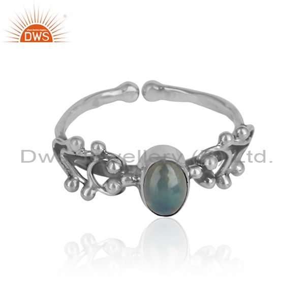 Ethiopian Opal Gemstone Girls Oxidized 925 Silver Designer Rings