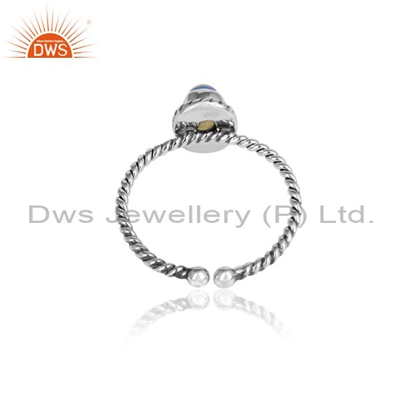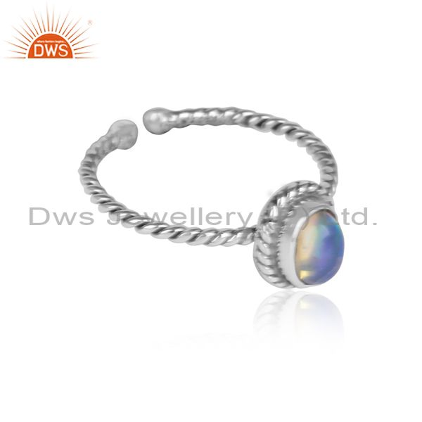Ethiopian Opal Gemstone Twisted Handmade Oxidized 925 Silver Rings