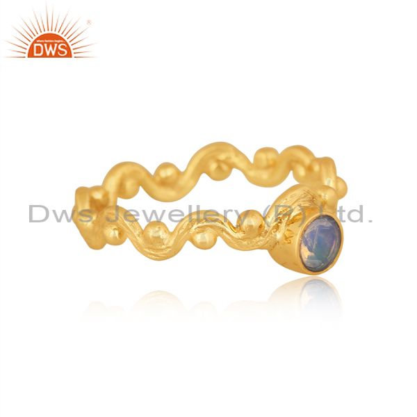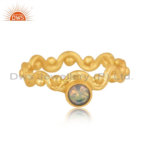 Ethiopian Opal Set Brass Gold Handmade Classic Designer Ring