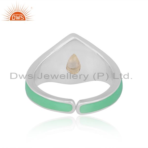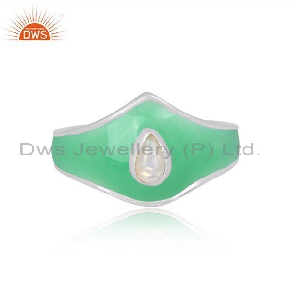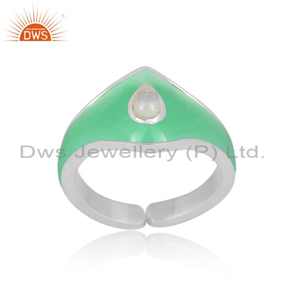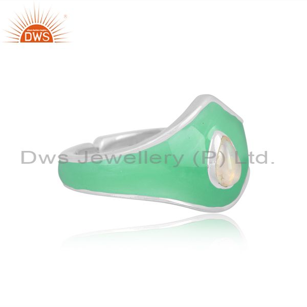 Ethiopian Opal Set Fine 925 Silver Green Enameled Fancy Ring