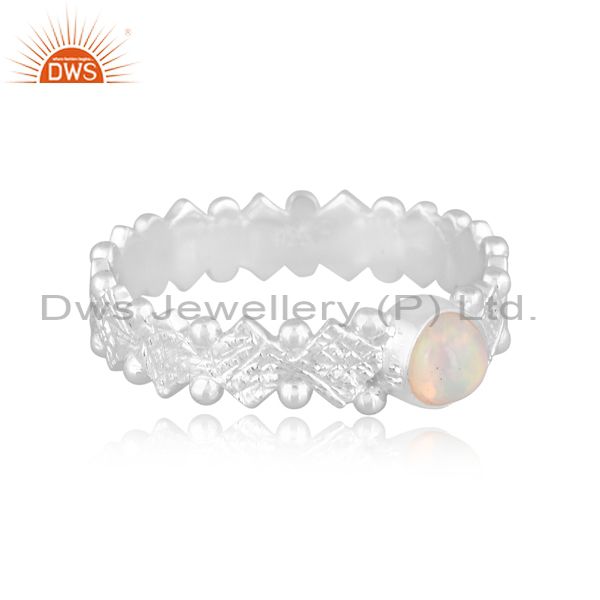 Ethiopian Opal Set Fine Sterling Silver Handmade Band Ring