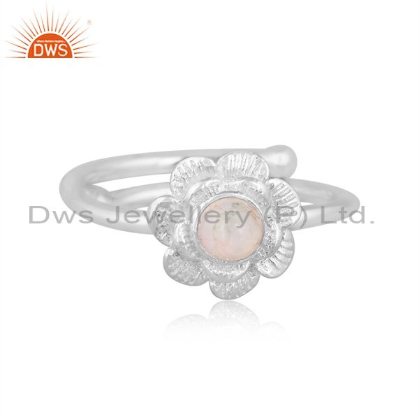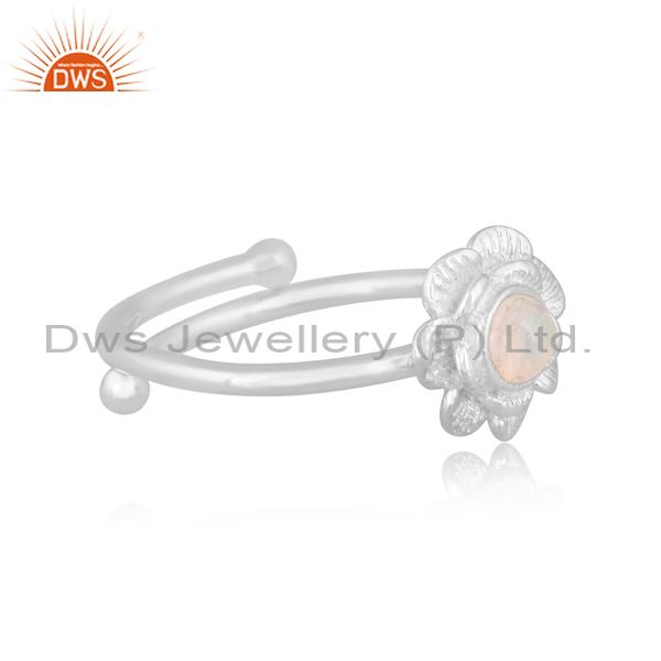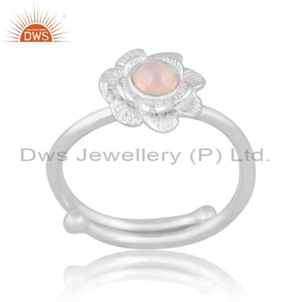 Ethiopian Opal Set Fine Sterling Silver Handmade Floral Ring