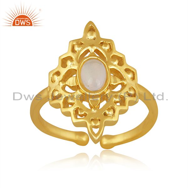 Ethiopian Opal Set Gold On 925 Silver Traditional Fancy Ring