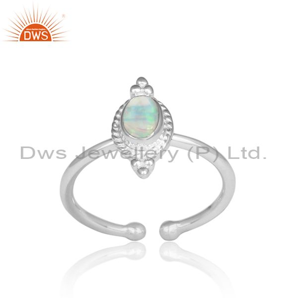 Ethiopian Opal Set Handmade Fine 925 Silver Adjustable Ring