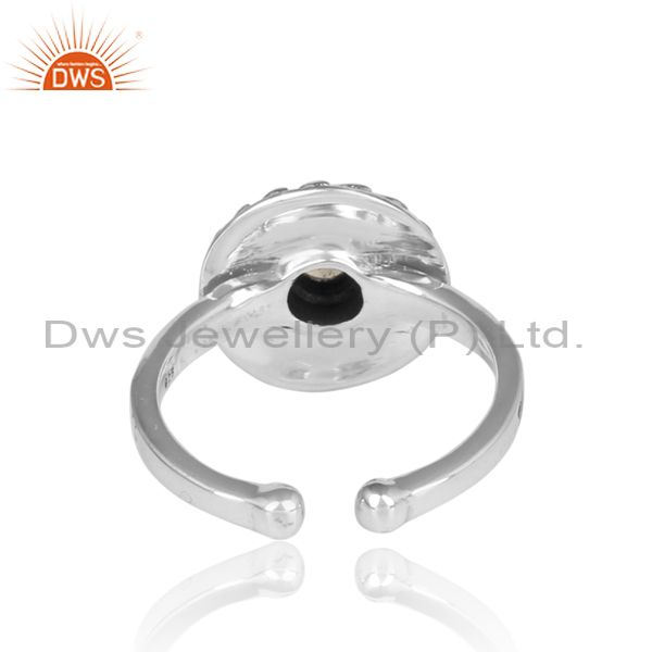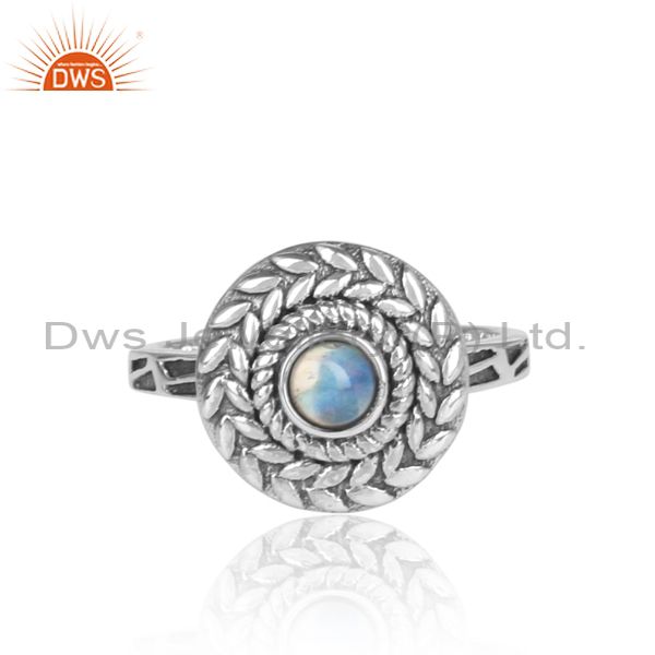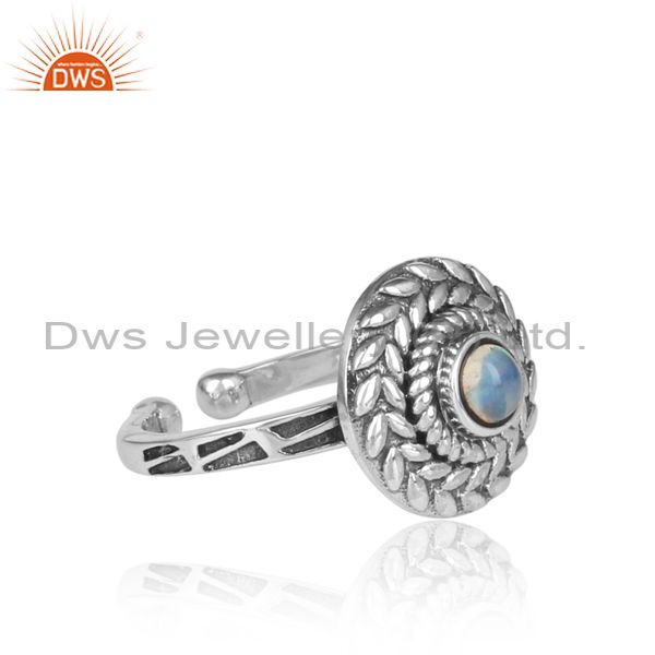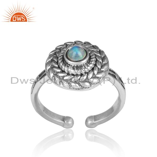 Ethiopian Opal Set Handmade Oxidized Silver Textured Ring