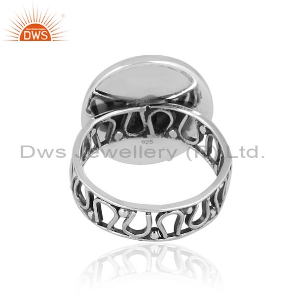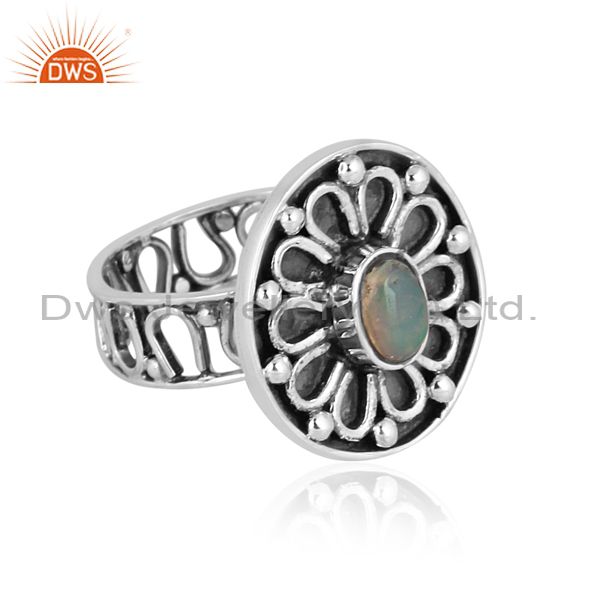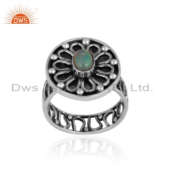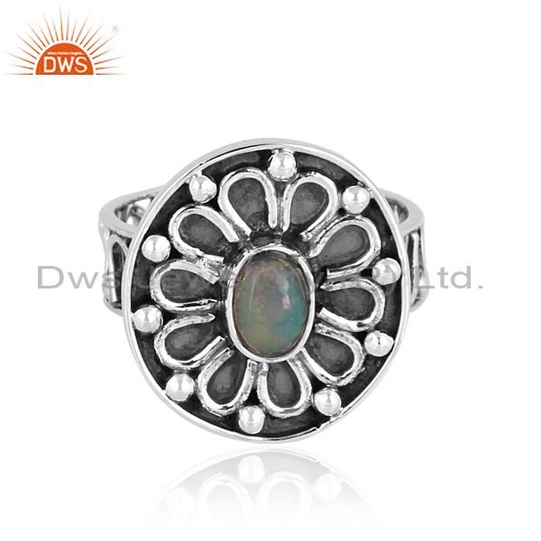 Ethiopian Opal Set Oxidized Silver Boho Floral Designer Ring