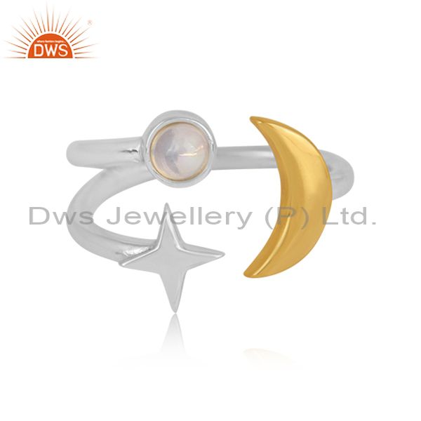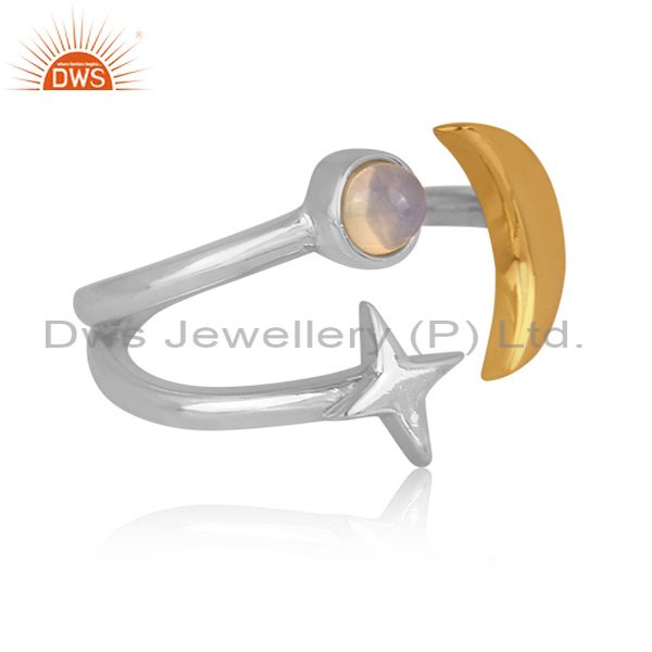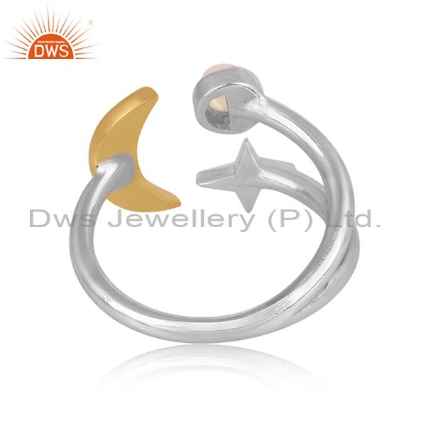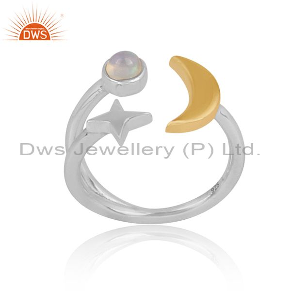 Ethiopian Opal Set Star And Moon Gold On Fine Silver Ring