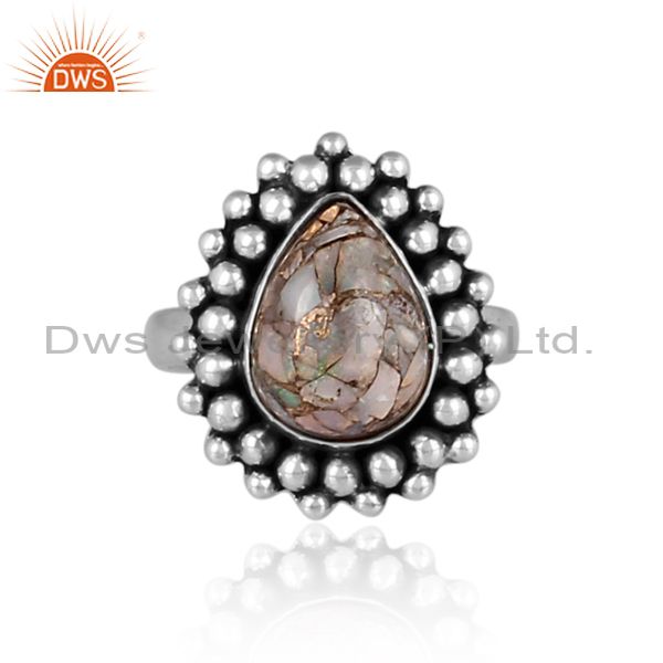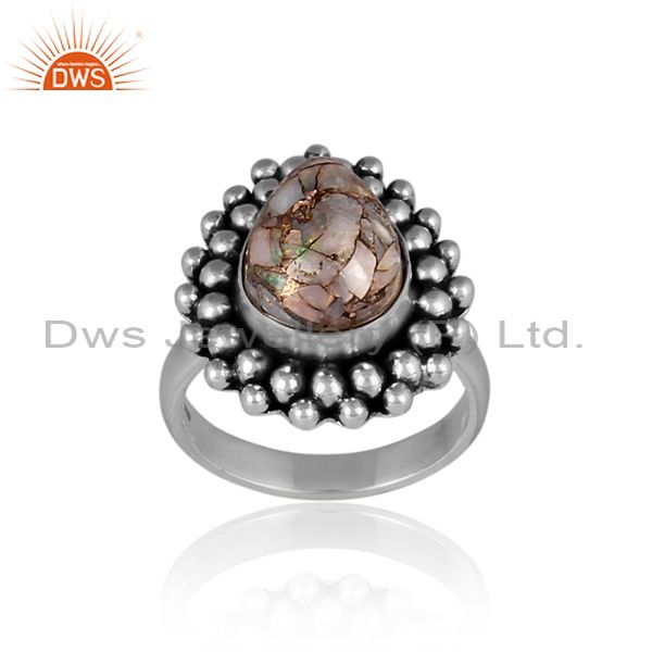 Ethnic Mojave Copper Ethiopian Opal Set Oxidized Silver Ring