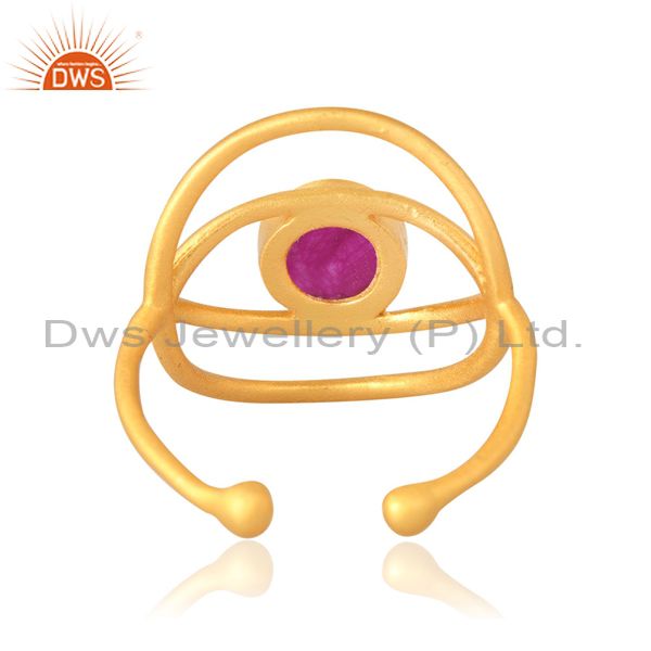 Evil Eye Ball Edged Double Layer Ring Aventurine Red Men