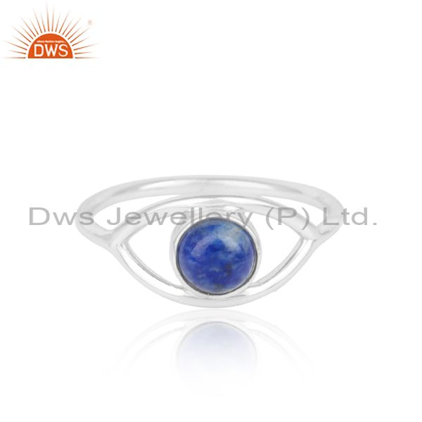 Evil Eye Ring In Silver With Lapis Stone Round Middle Design