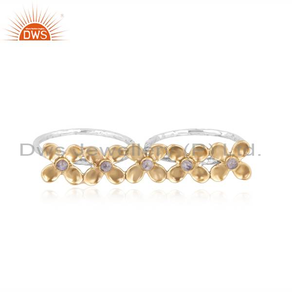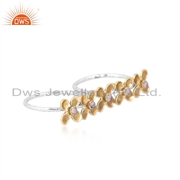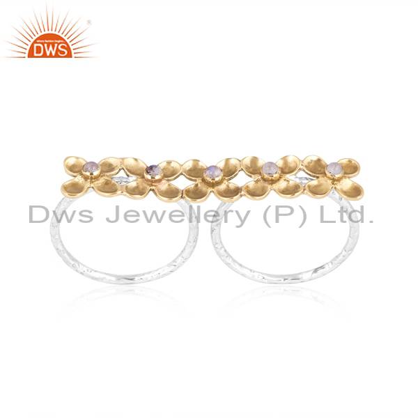 Exquisite 925 Silver Double Finger Rainbow Moonstone Ring