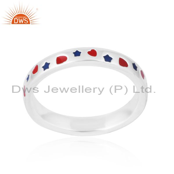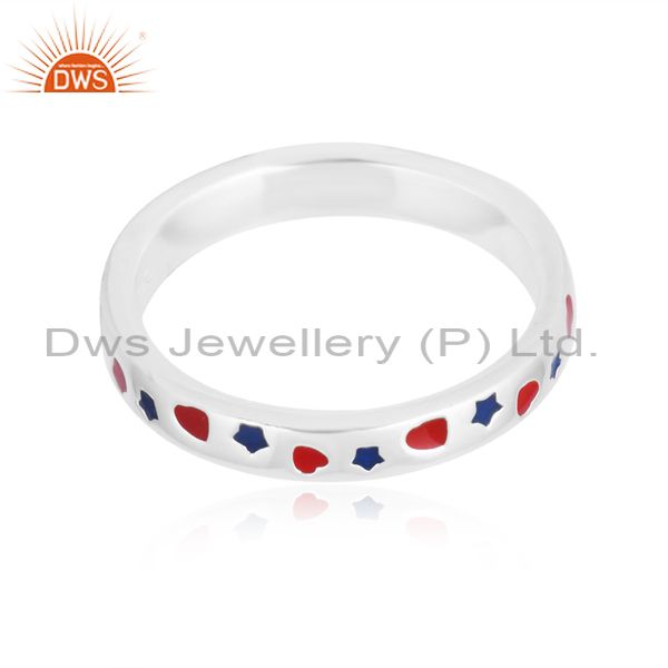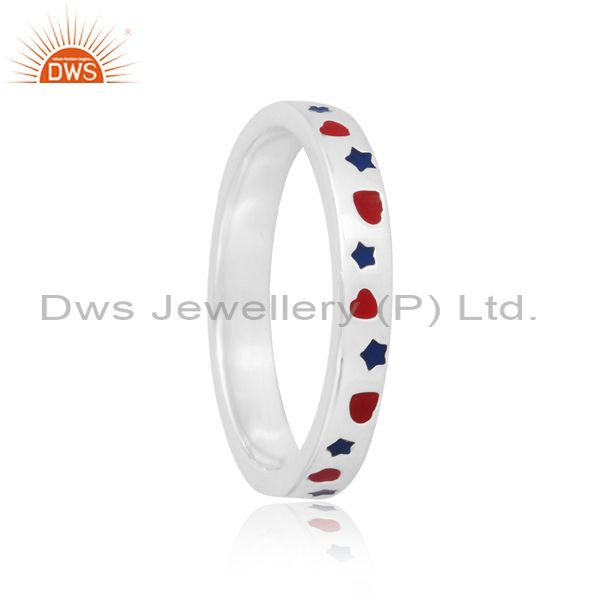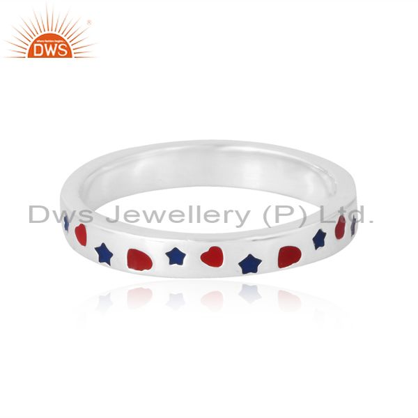 Exquisite 925 Silver Ring With Red And Blue Enamel Accents