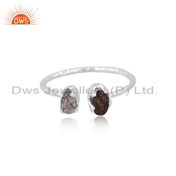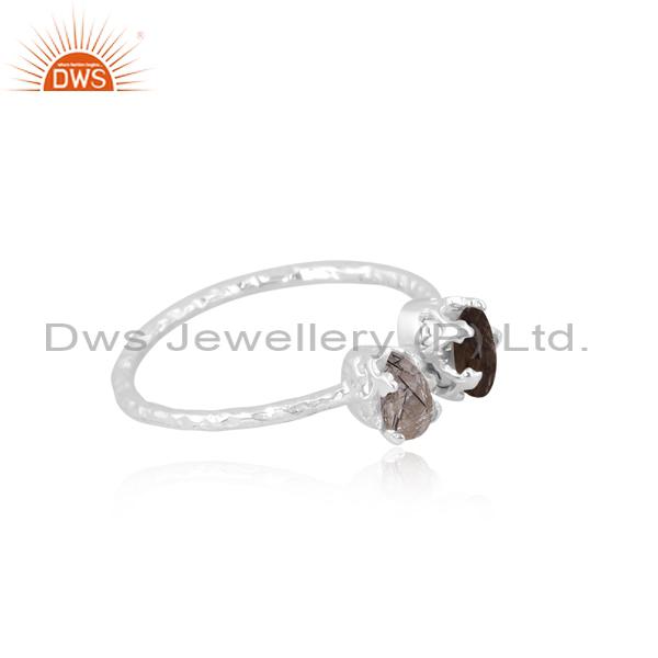 Exquisite Engagement Ring: Black Rutile And Smoky