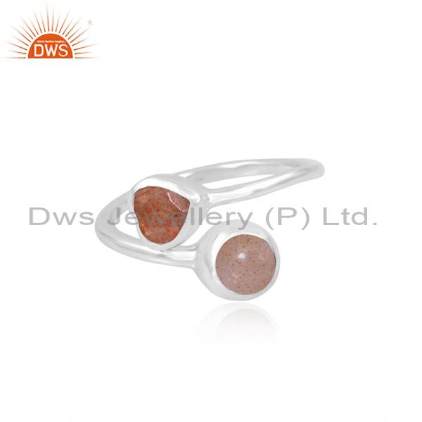 Exquisite Gemstone Ring: Sunstone And Peach Moonstone Duo