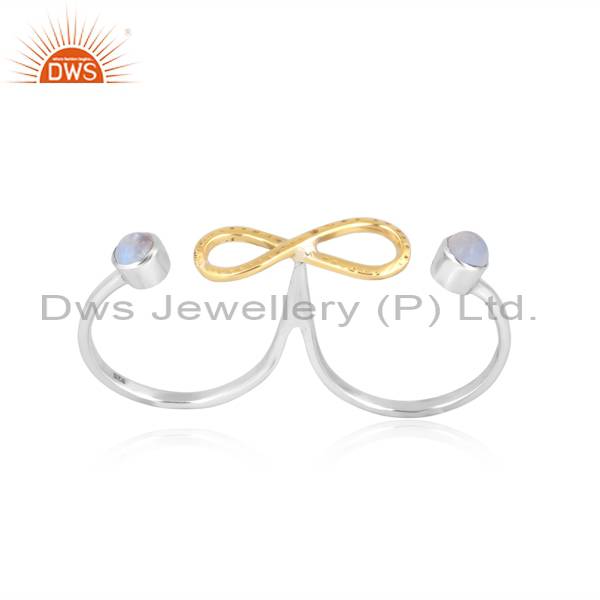 Exquisite Openable Double Finger Rainbow Moonstone Ring