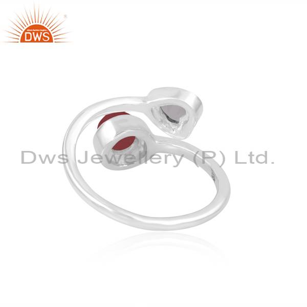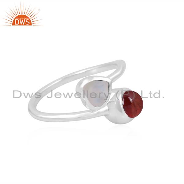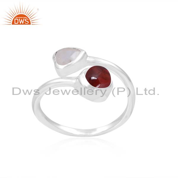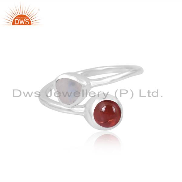 Exquisite Ring: Gemstone Garnet & Rainbow Moonstone Duo