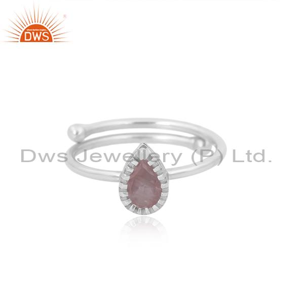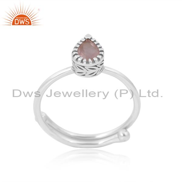 Exquisite Silver Engagement Ring W/ Rose Quartz
