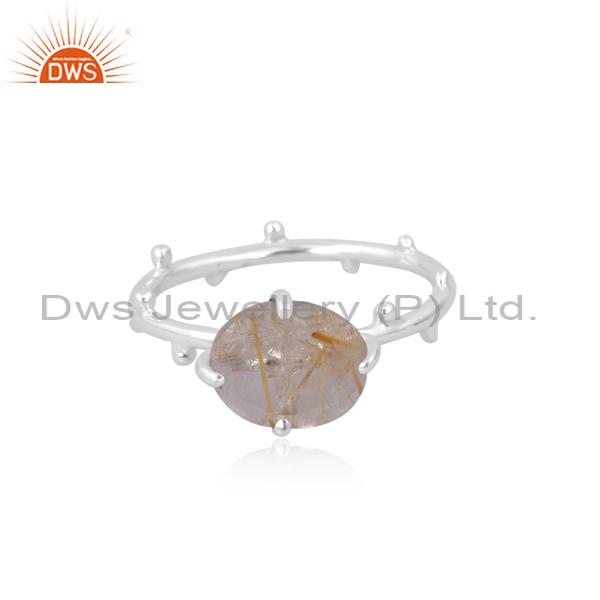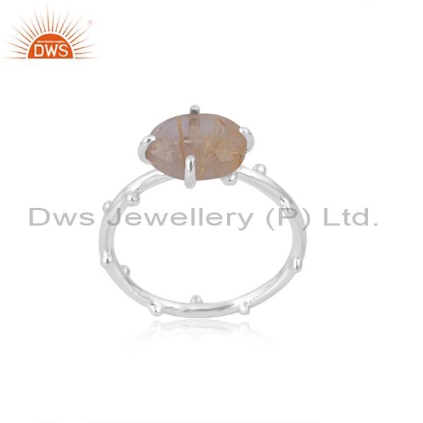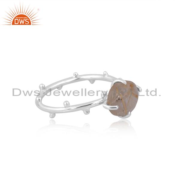 Exquisite Silver Engagmnt Ring W/ Golden Rutile
