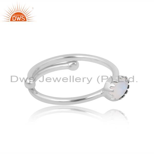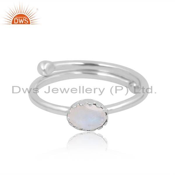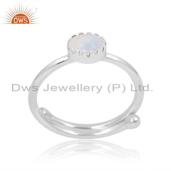 Eye-Catching Adjustable Oval Cut Rainbow Moonstone Ring