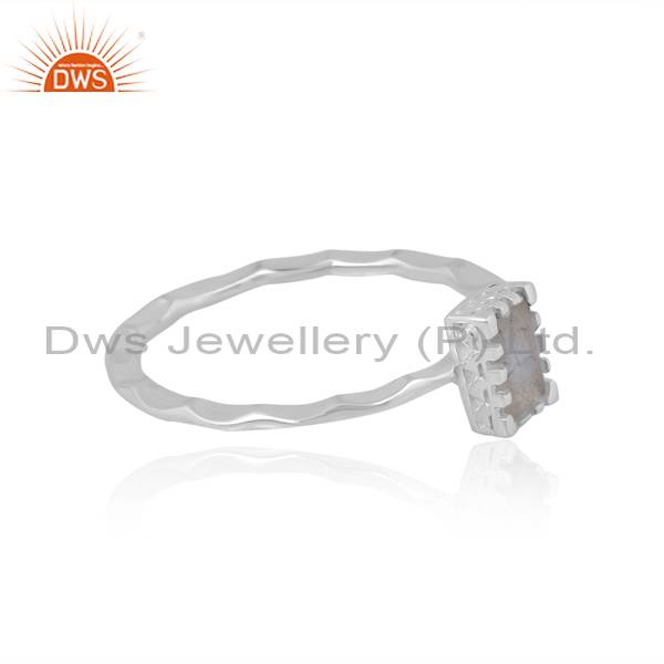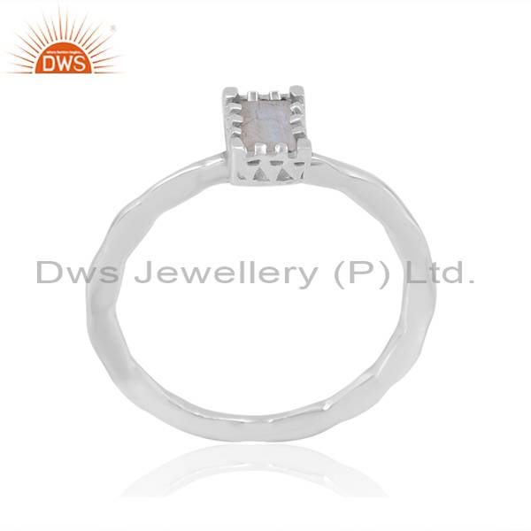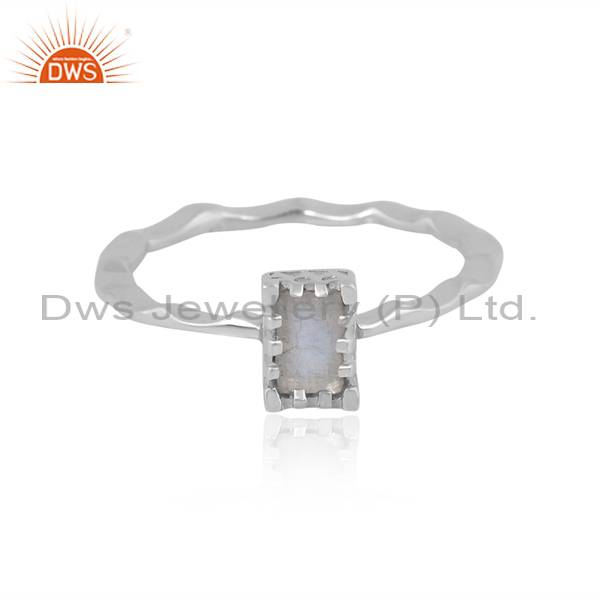 Eye-Catching Stackable Beguette Cut Rainbow Moonstone Ring