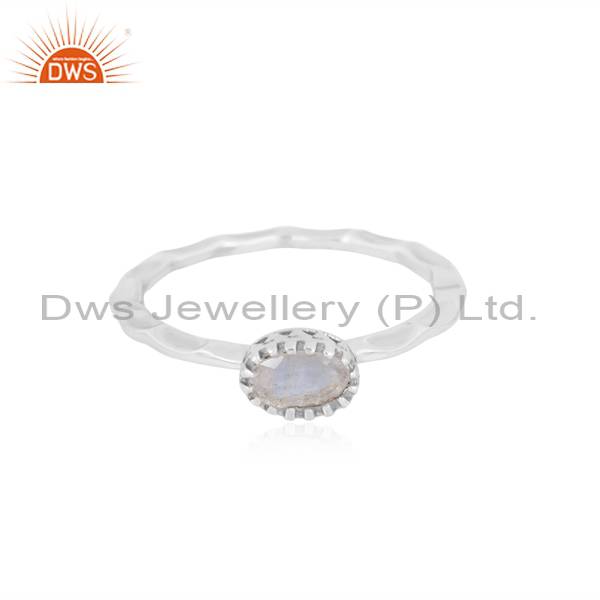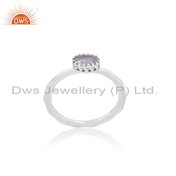 Eye-Catching Stackable Oval Cut Rainbow Moonstone Ring