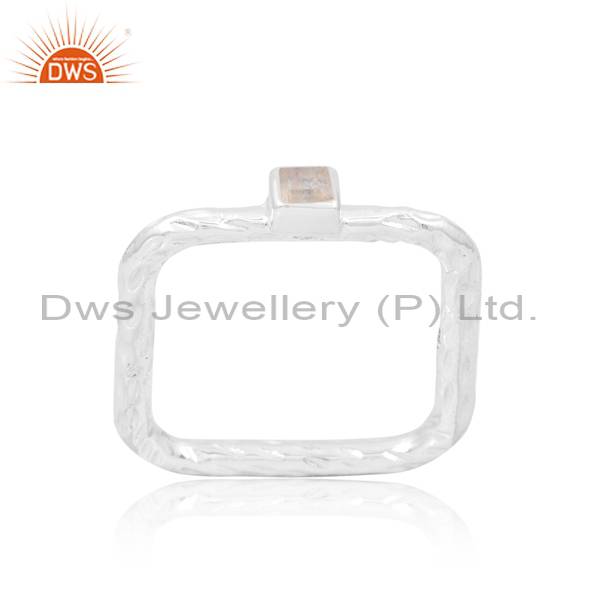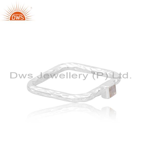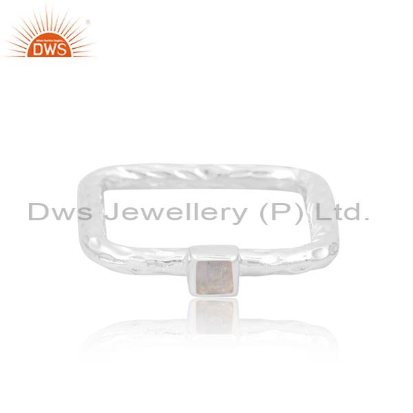 Eye-Catching Stackable Square Cut Rainbow Moonstone Ring