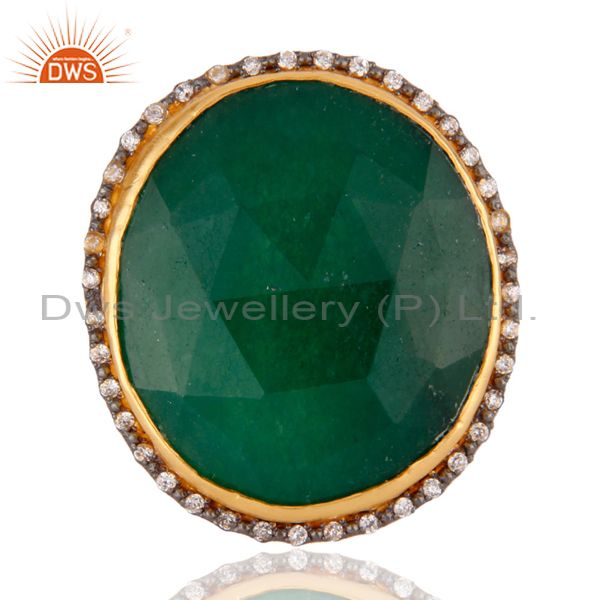 Faceted Green Aventurine Gemstone 22K Gold Plated Cocktail Ring With Cz