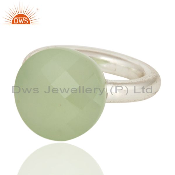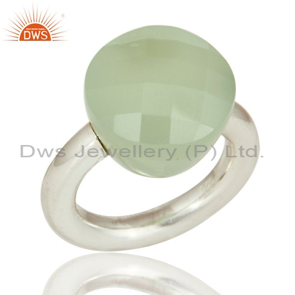 Faceted Green Chalcedony Gemstone Sterling Silver Ring