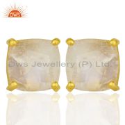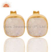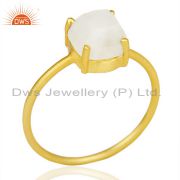 Faceted Rainbow Moonstone 18K Gold Plated Sterling Silver Stacking Ring