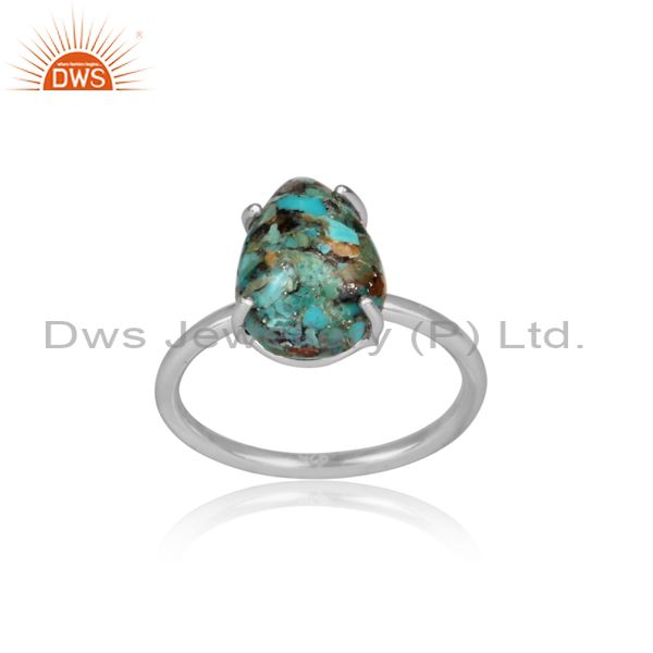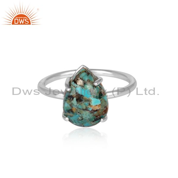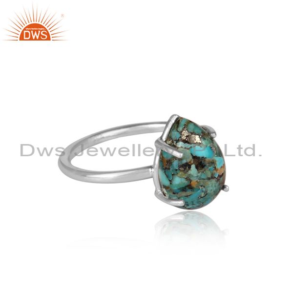 Fine 925 Silver And Pear Cut Boulder Turquoise Designer Ring