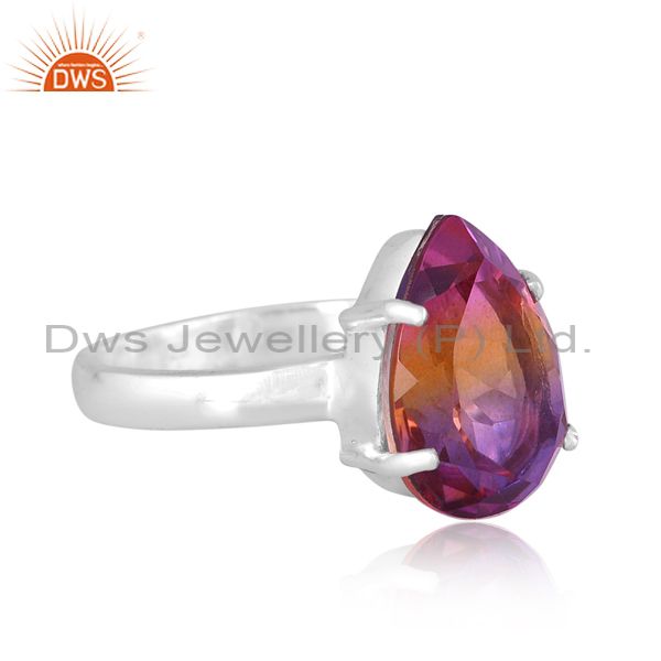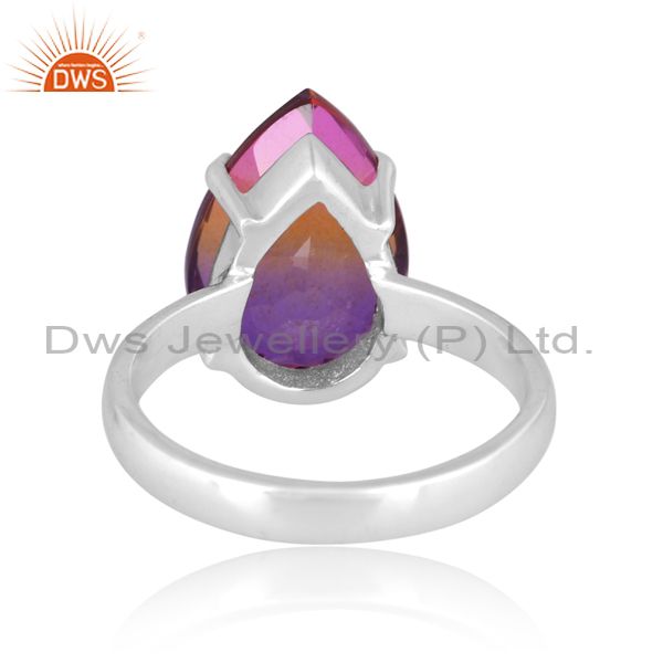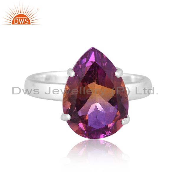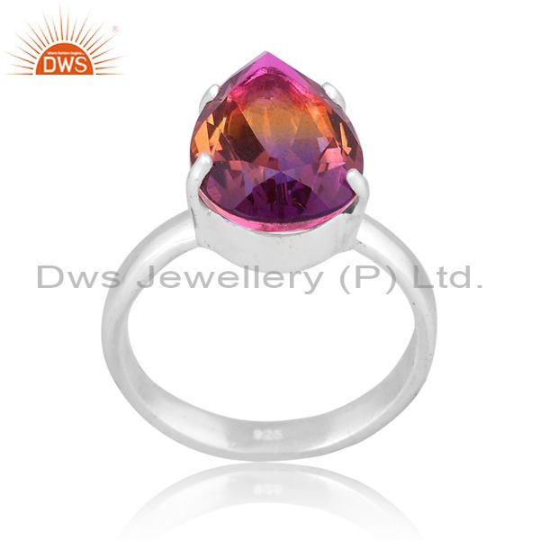 Fine 925 Silver Bio Ametrine Doublet Quartz Set Fancy Ring