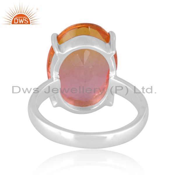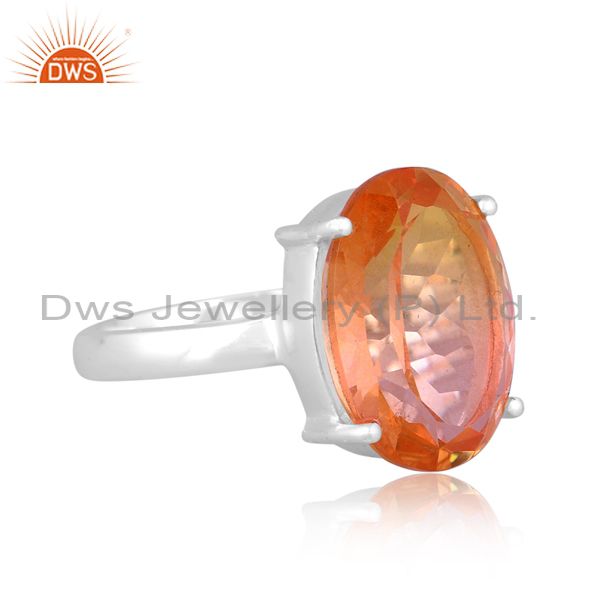 Fine 925 Silver Bio Morganite Doublet Quartz Set Design Ring