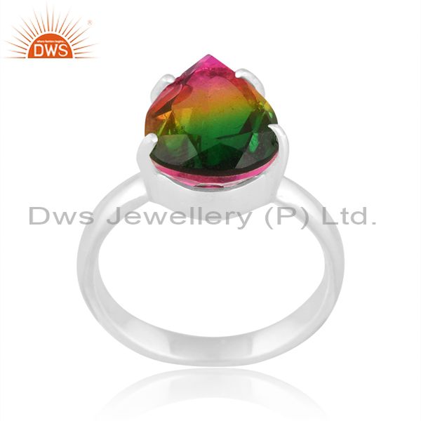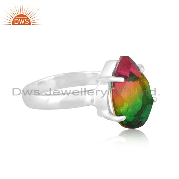 Fine 925 Silver Bio Mystic Doublet Quartz Set Fancy Ring