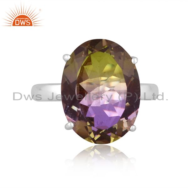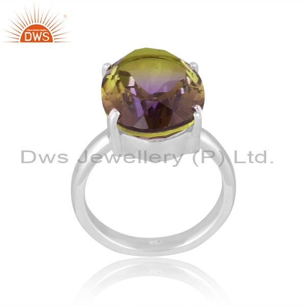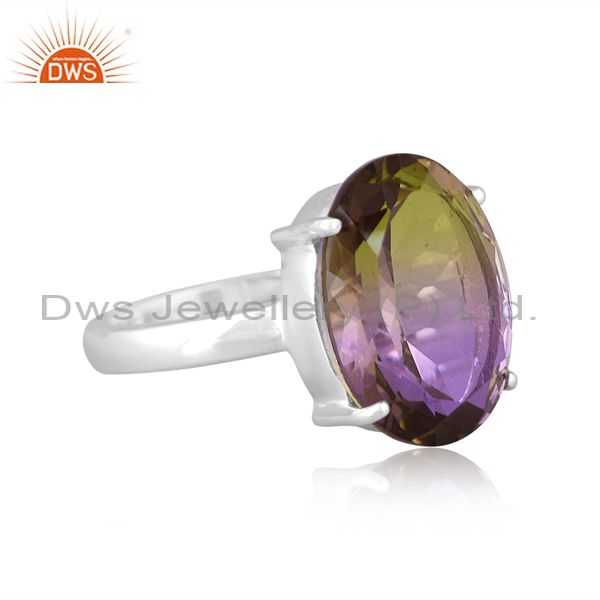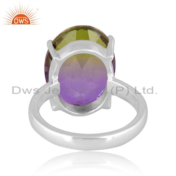 Fine 925 Silver Bio Peacock Doublet Quartz Set Design Ring