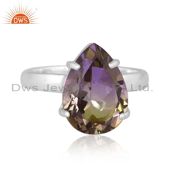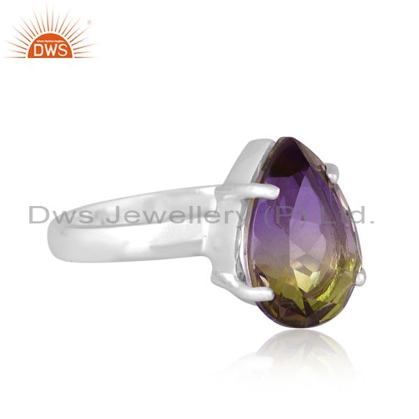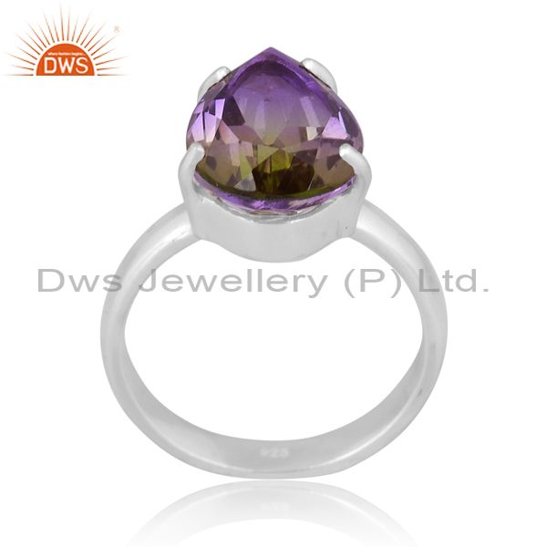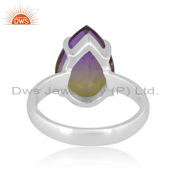 Fine 925 Silver Bio Peacock Doublet Quartz Set Fancy Ring