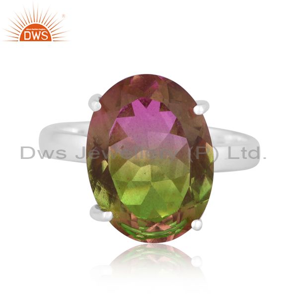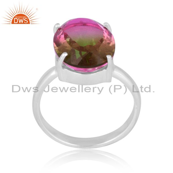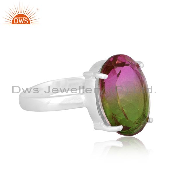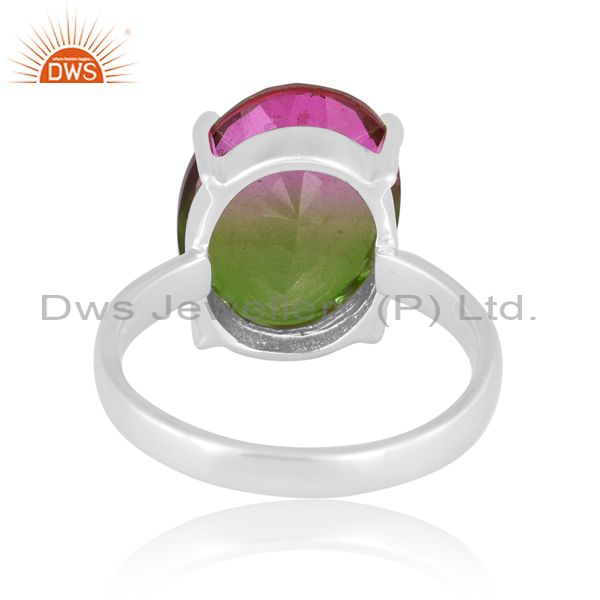 Fine 925 Silver Bio Watermelon Doublet Quartz Design Ring