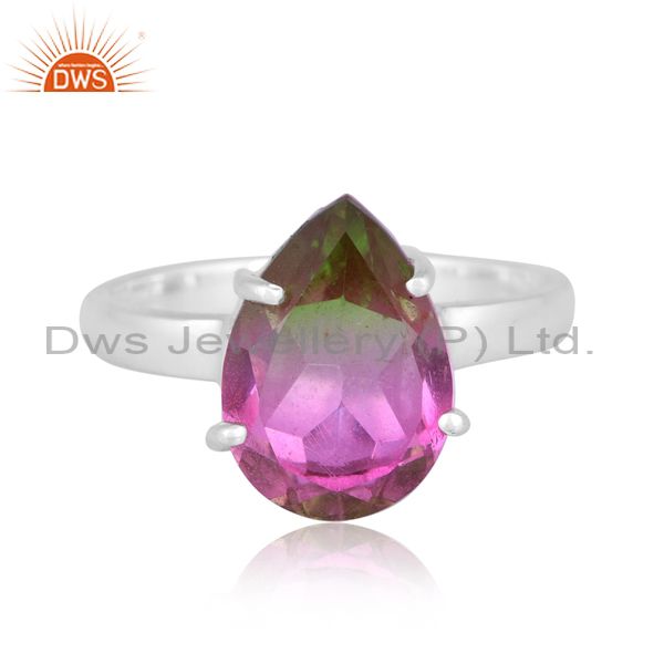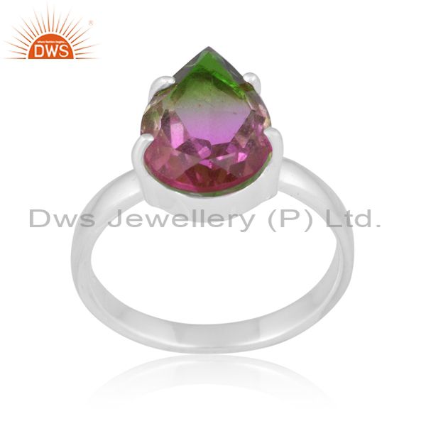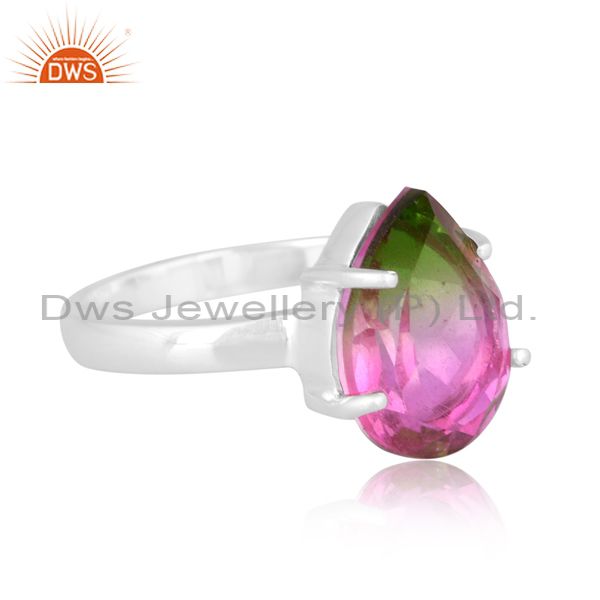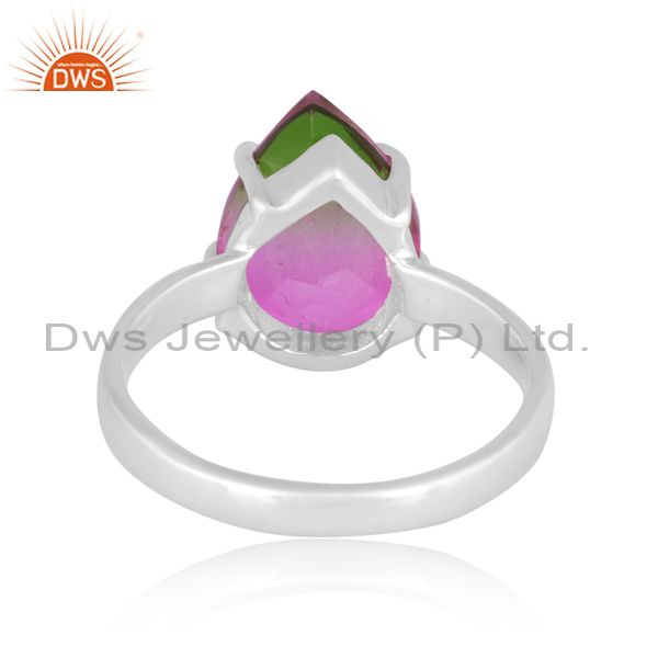 Fine 925 Silver Bio Watermelon Doublet Quartz Set Fancy Ring
