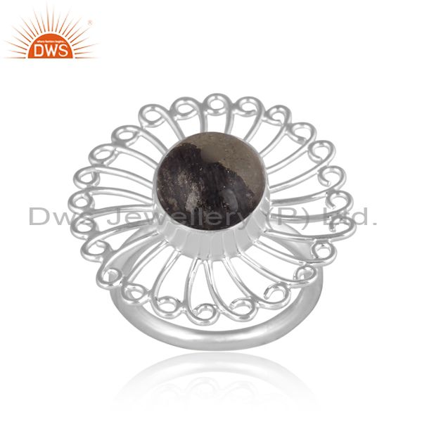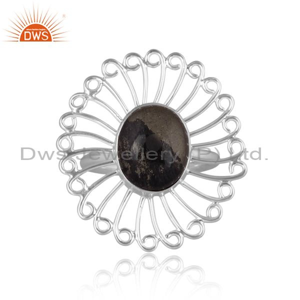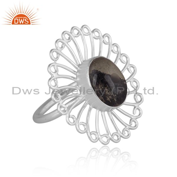 Fine 925 Silver Doublet Apache Gold Crystal Set Floral Ring