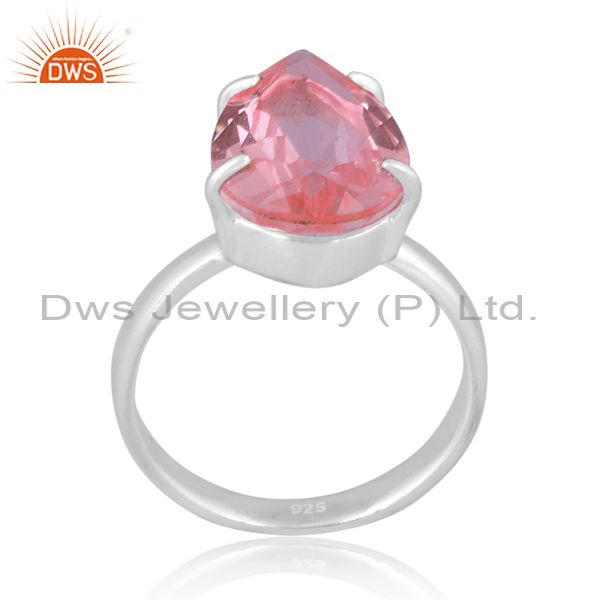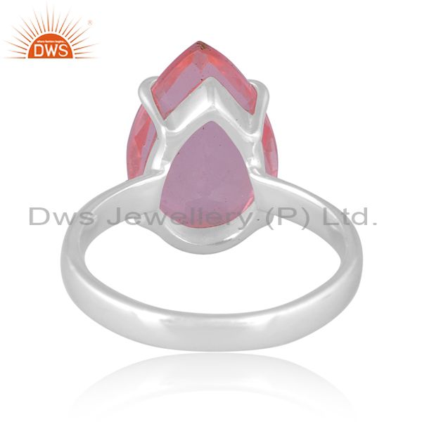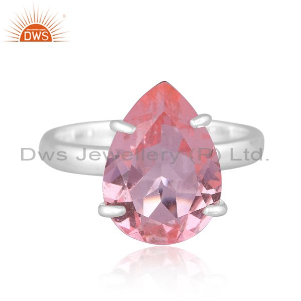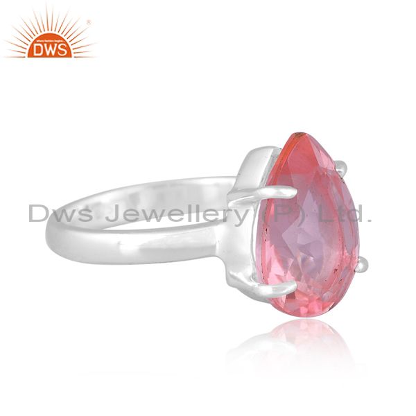 Fine 925 Silver Pear Cut Doublet Morganite Quartz Stone Ring