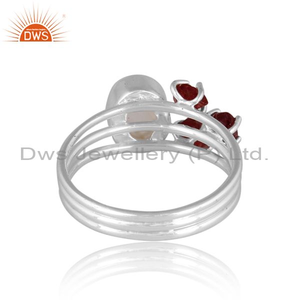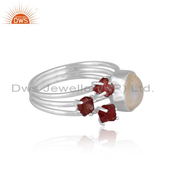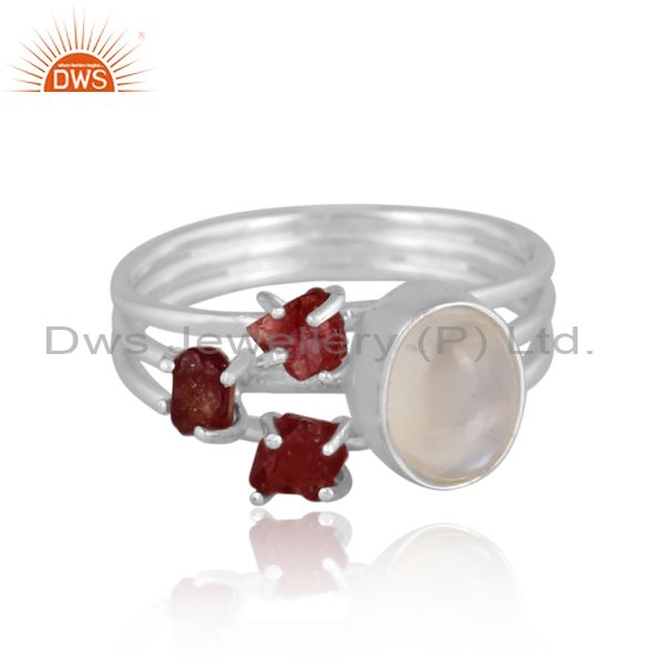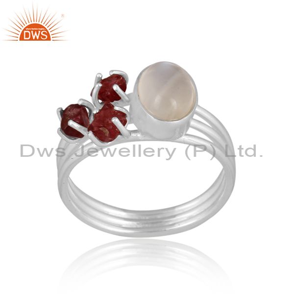 Fine 925 Silver Rainbow Moon Stone And Spinel Ruby Set Ring