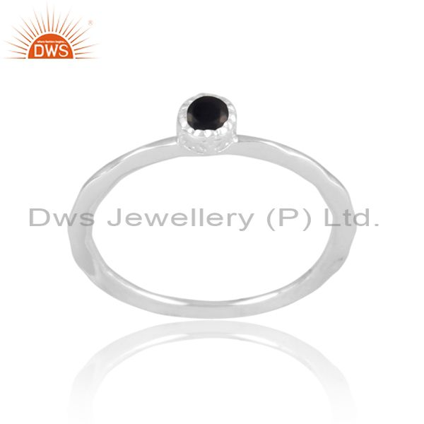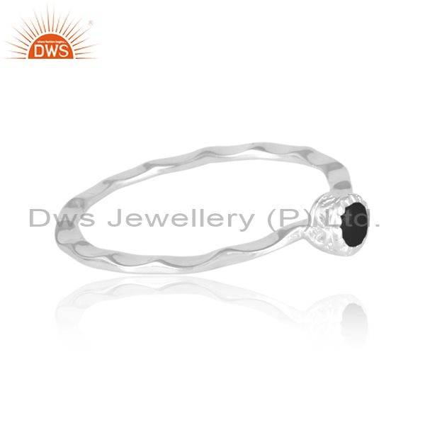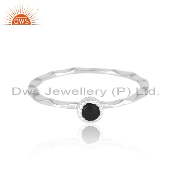 Fine 925 Silver Round Cut Black Onyx Set Handhammered Ring