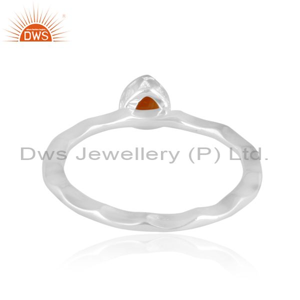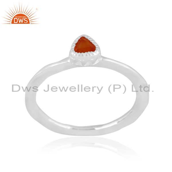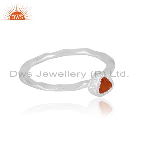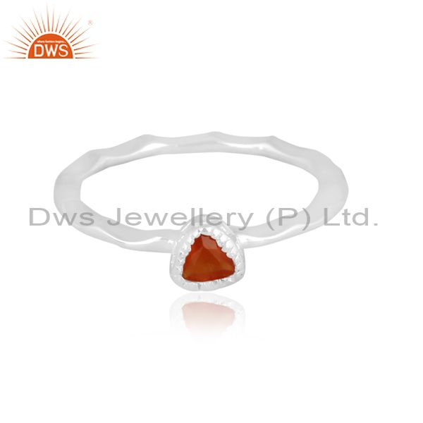 Fine 925 Silver Triangular Carnelian Set Handhammered Ring