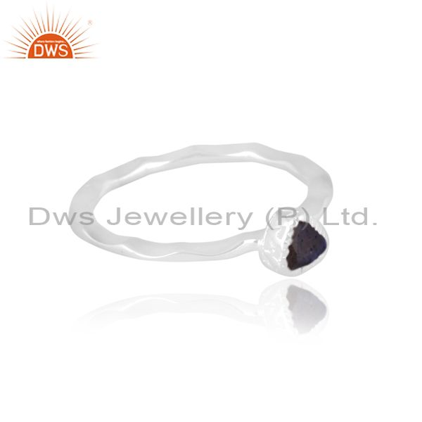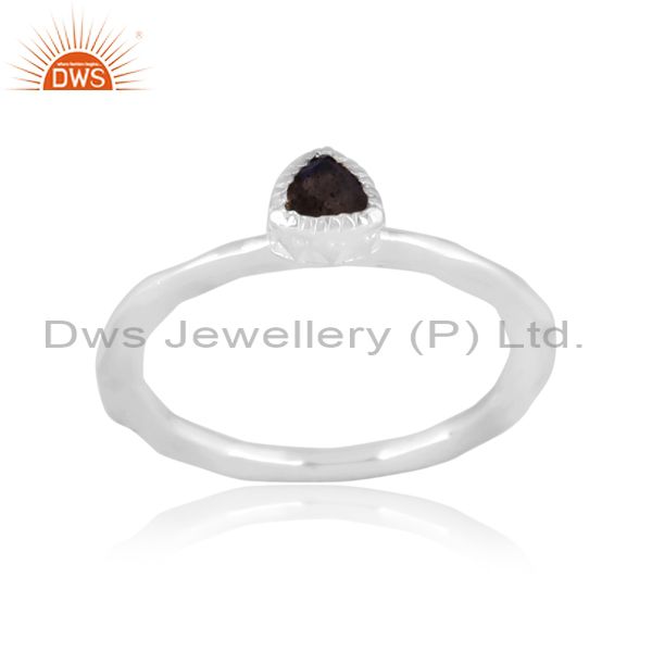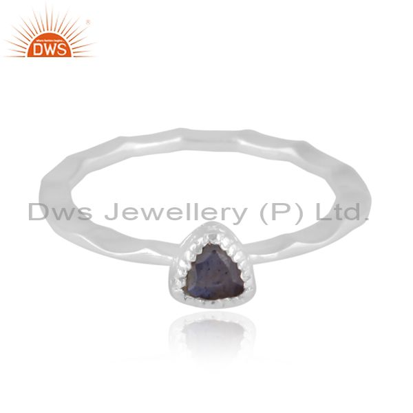Fine 925 Silver Triangular Labradorite Set Handhammered Ring